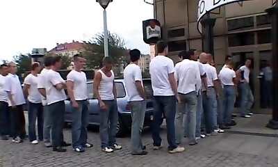 Slutty dark-haired fucked rigid by 30 men in this gangbang film
