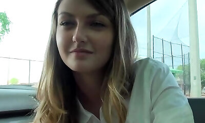 Naughty BF gets a good sucky-sucky from his GF Kristen Scott in his car