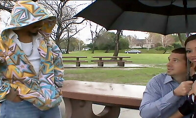 Alluring babes Ember Stone and her GF are pulverized by one horny guy