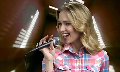 Busty and lean fresh blonde teen babe teases camera on the bed