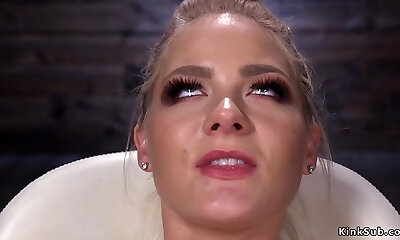 Squirting blonde fucked by machine