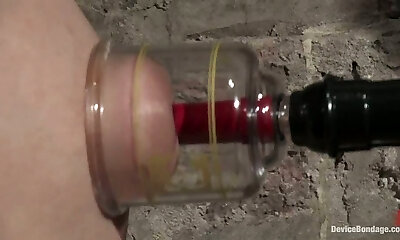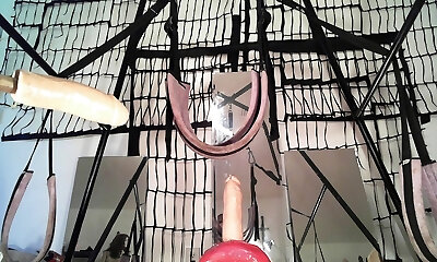 Jummy sex slave is trapped in the instrument and fucked by it