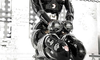 Fucking her with a lovemaking machine and gimps go bananas