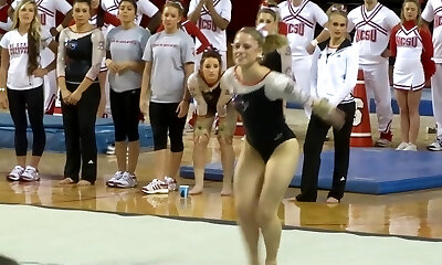 灵活的性感体操运动员准备采取一些公鸡的支持