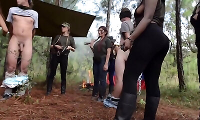 Asiatin haben Gruppensex im freien