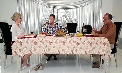 Evelin和Seth在感恩节在厨房分享好大小的意大利腊肠