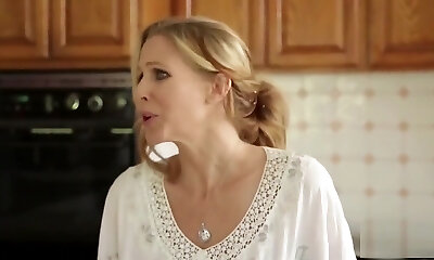 妈妈'S女孩-热金发继母凯拉*佩奇和基特*默瑟战斗在他们的继子's大公鸡!