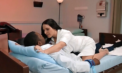 淘气的护士和热气腾腾的黑头发吸入和pummel一个成功的病人