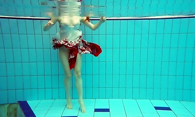 热气腾腾的红头发的模型marketa游泳裸体在一个游泳池