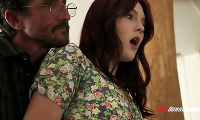 看起来顽皮的红发女郎与phat屁股Xeena Mae是为小狗pummel制作的