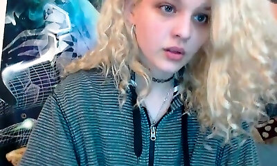 几乎没有法律的一岁年长的灰金发小猫在cam中展示了她的山药大小的玫瑰色水壶