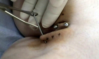 Marionette's pussy getting pierced